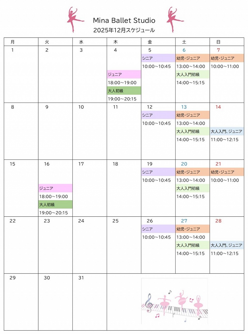 13:00〜14:00 幼児、ジュニアクラス